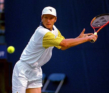 Yevgeny Aleksandrovich Kafelnikov (Russian: Евгений Александрович Кафельников, Russian pronunciation: [jɪvˈɡenʲɪj ɐlʲɪˈksandrəvʲɪtɕ ˈkafʲɪlʲnʲɪkəf]; born 18 February 1974) is a former World No. 1 tennis player from Russia. He won two Grand Slam singles titles (one French Open and one Australian Open), four Grand Slam doubles titles, and the men's singles gold medal at the Sydney Olympic Games. He also helped Russia win the Davis Cup in 2002. He is the last man to have won both the singles and men's doubles titles at the same Grand Slam tournament, which he did at the 1996 French Open.