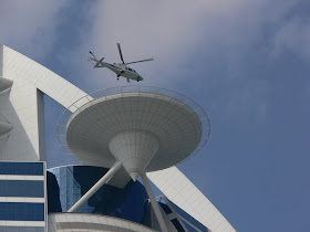Yes the picture's real. Burj Al Arab in Dubai is home to the world's highest tennis court (at times). At 210 meters (about 690 feet), it's pretty far up there. Way higher than I'd feel comfortable running around hitting a ball. The court doubles as a landing pad when there aren't any matches being played, and as a place to shit your pants the rest of the time.